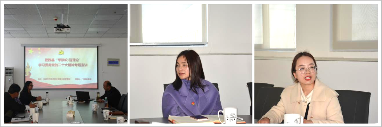 非凡成就鼓舞人心,宏偉藍(lán)圖催人奮進(jìn)。 3月13日下午,肥西縣“舉旗幟 送理論”黨的二十大精神專題宣講活動(dòng)在安徽萬(wàn)利生態(tài)農(nóng)業(yè)有限公司二樓會(huì)議室召開。本次宣講會(huì)由官亭鎮(zhèn)組織部及外宣部主辦,安徽萬(wàn)利生態(tài)農(nóng)業(yè)黨支部協(xié)辦,來(lái)自官亭鎮(zhèn)10余家非公企業(yè)的20余名黨員、積極分子參加了本次活動(dòng)。