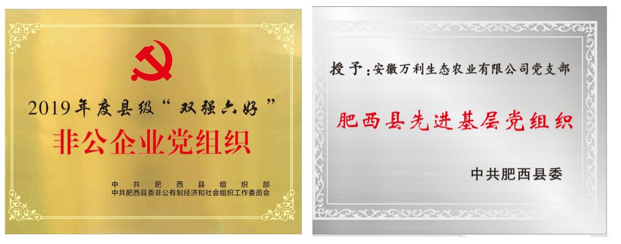 安徽萬(wàn)利生態(tài)農(nóng)業(yè)有限公司黨支部成立于2018年5月,支部現(xiàn)有正式黨員十余名,預(yù)備黨員及入黨積極分子多名。目前萬(wàn)利黨支部已取得“肥西縣先進(jìn)基層黨組織”、“雙強(qiáng)六好”黨組織等榮譽(yù)稱號(hào)。